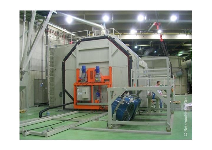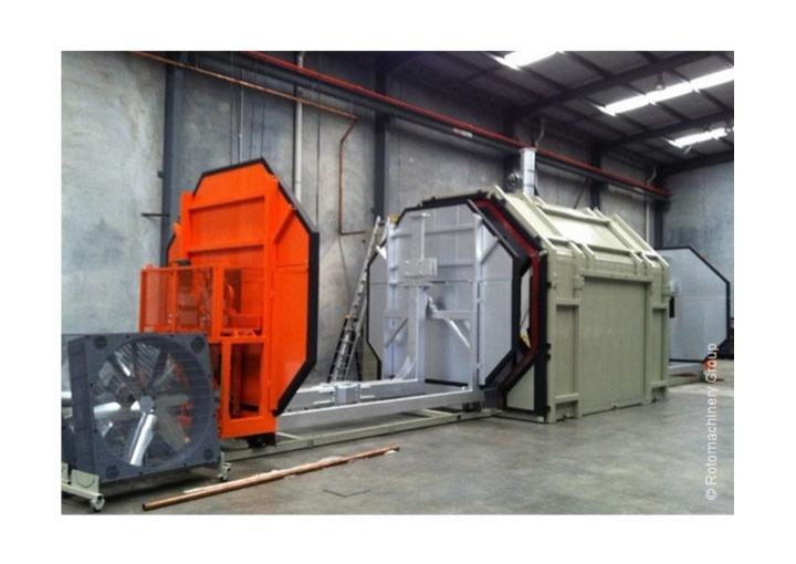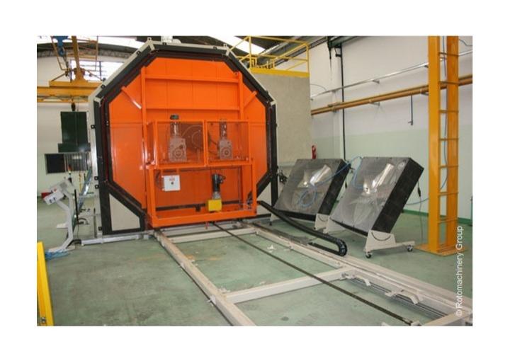 State of the art machine for rotational moulding, with reduced floor space and high load capacity. Possible configuration with 1 or 2 carriages, with central oven and two stations on each side of the oven for cooling/loading/unloading. The same arm can do two consecutive cycles, whilst the other is either waiting or is being serviced, or not operational due to tests or for arm change to straight or offset. Computerised and automatic operation, independent of time and temperature settings for each arm, and therefore for each mould or combination of moulds. Optimal choice for the production of very large parts, of different materials, with various thicknesses and with different quality levels .