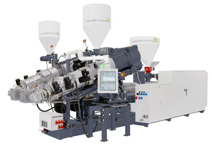 Thanks to the coextruder’s flexible frame design, this machine combination offers maximum flexibility in die connection, so that die changes are made easy. The extruders have a common control cabinet, which saves both cost and space and makes the equipment easy to operate as well.
